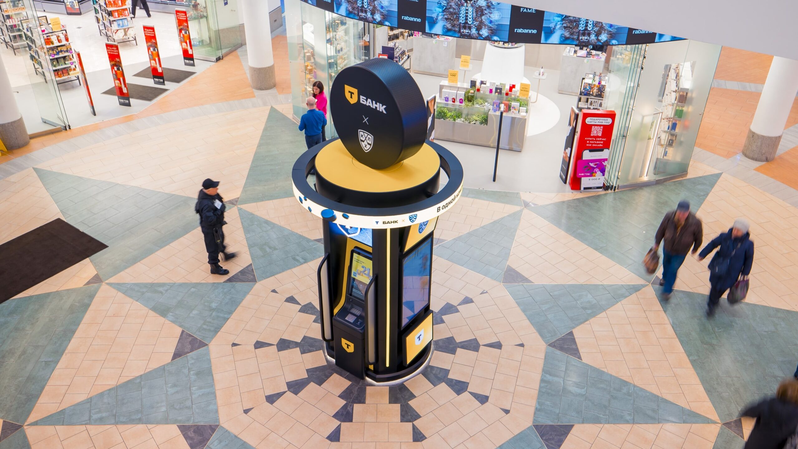 «Хоккейный банкомат» от Т-Банка и КХЛ размещен в московском ТРЦ «Атриум» и доступен для клиентов всех банков. Помимо стандартных банковских операций, на его интерактивных LED-экранах транслируются нарезки лучших моментов матчей КХЛ.
