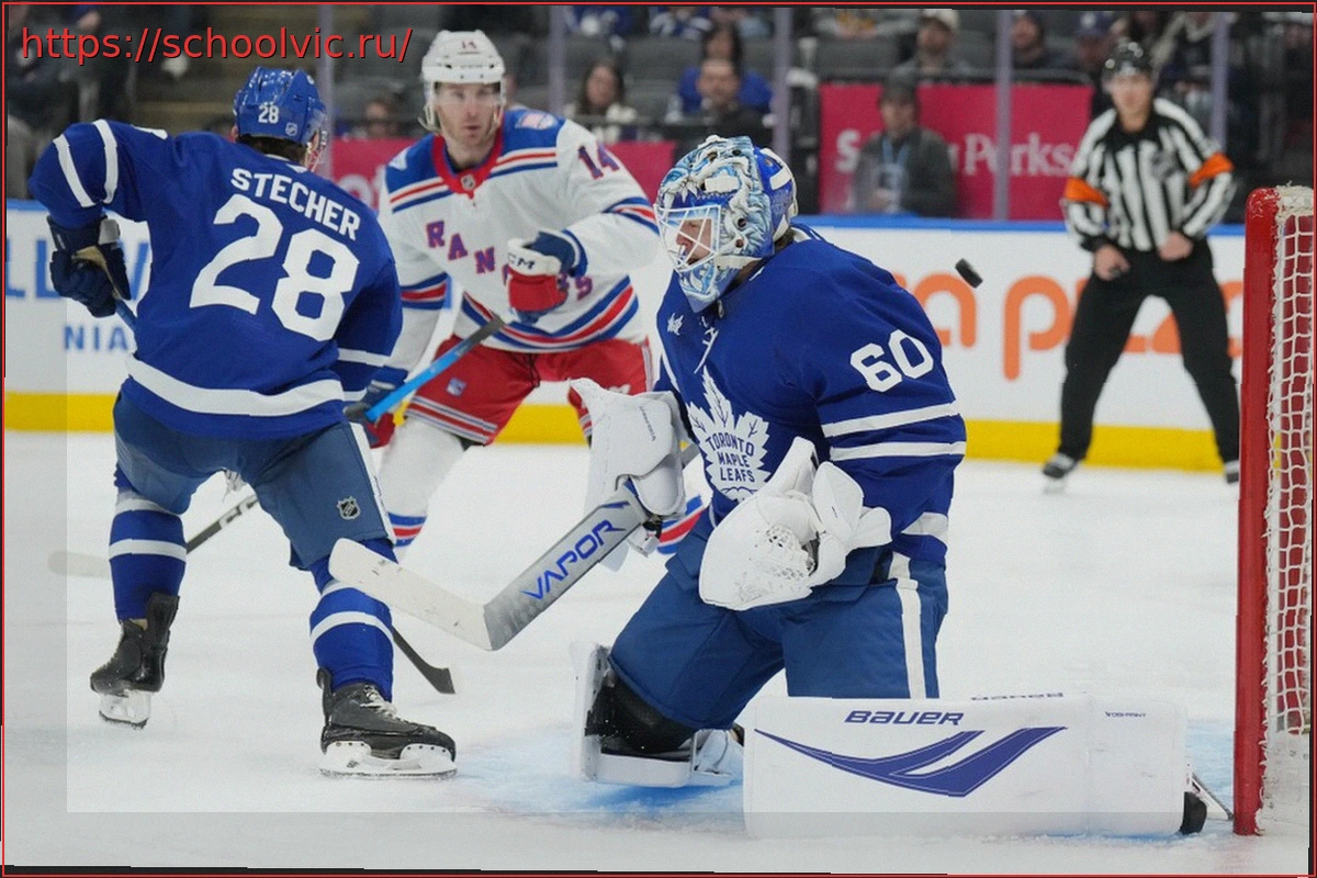 В рамках регулярного чемпионата Национальной хоккейной лиги (НХЛ) команда «Торонто Мэйпл Лифс» одержала победу над «Нью-Йорк Рейнджерс» со счетом 4:3.